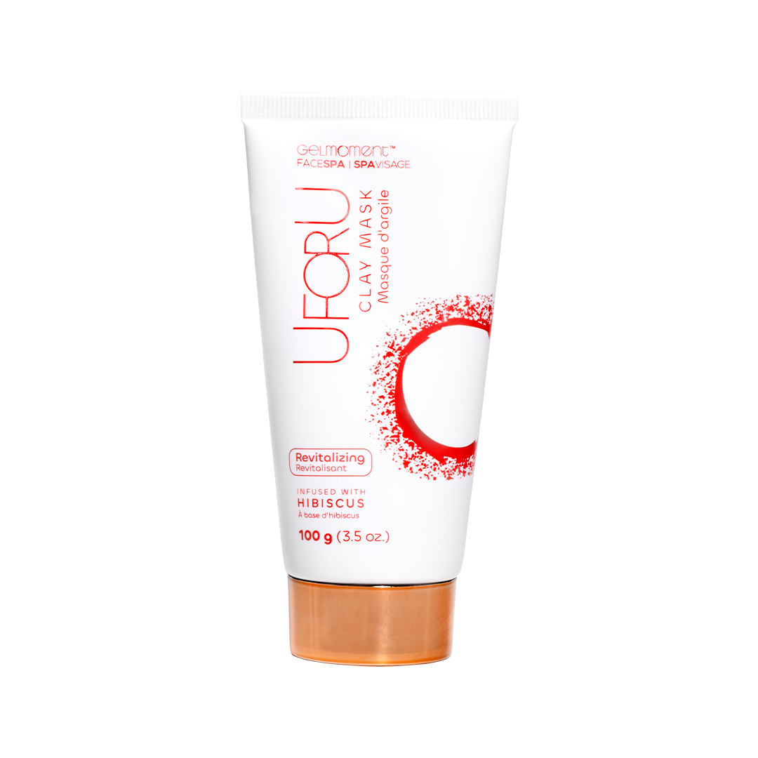 UFORU Revitalizing Clay Mask features Hibiscus extract, a gentle exfoliant that helps unclog pores and control oil production, promoting a younger and smoother looking complexion.